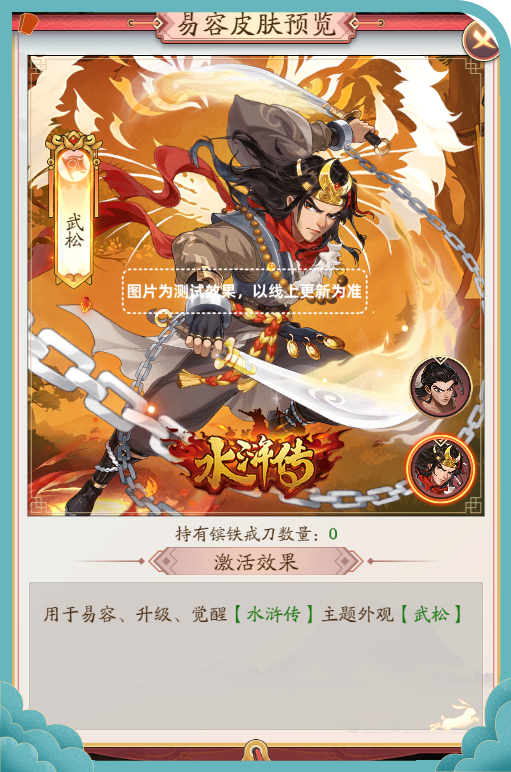 3、「镔铁戒刀」用于激活水浒传易容外观【武松】。