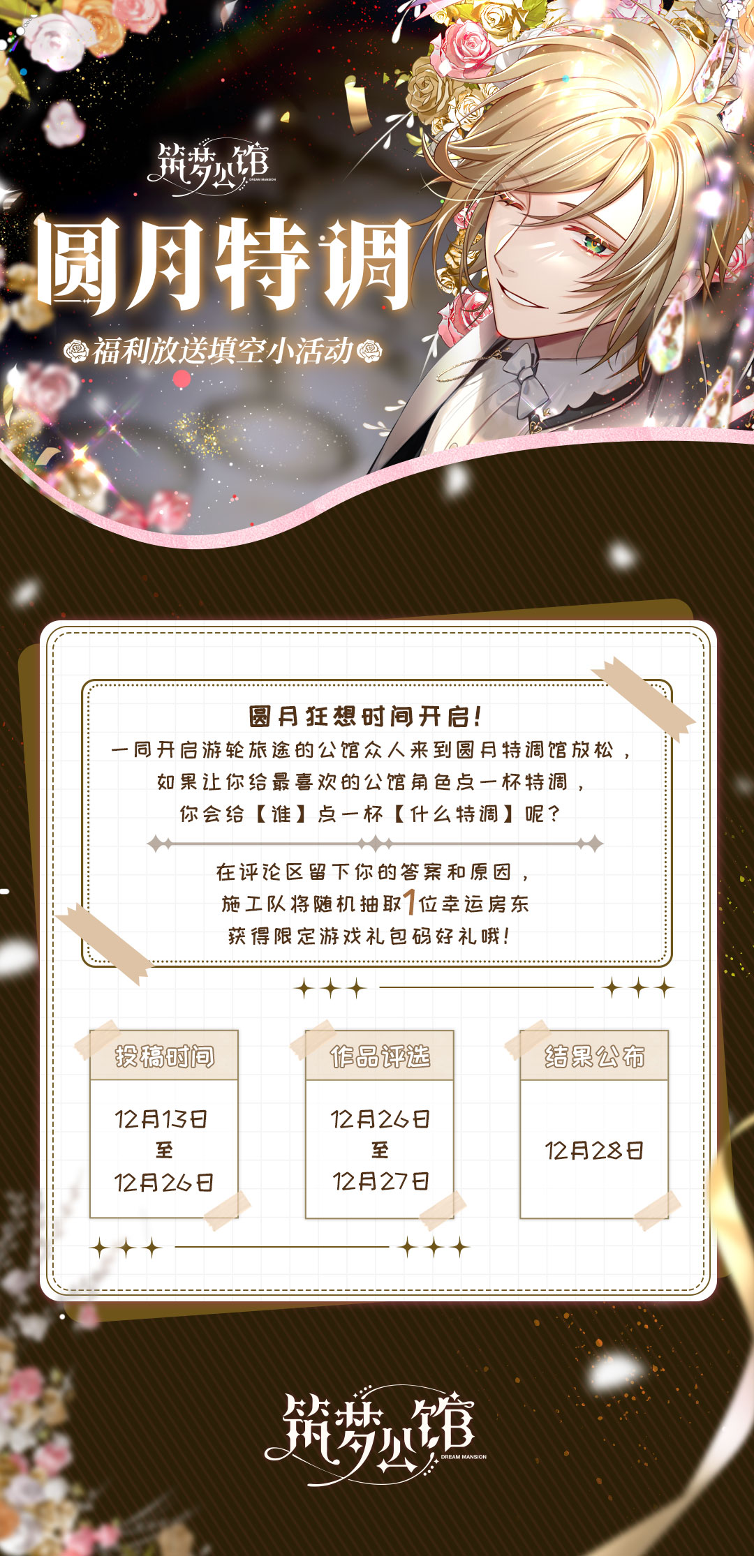 一同开启游轮旅途的公馆众人来到圆月特调馆放松,如果让你给最喜欢的公馆角色点一杯特调,你会给【谁】点一杯【什么特调】呢?