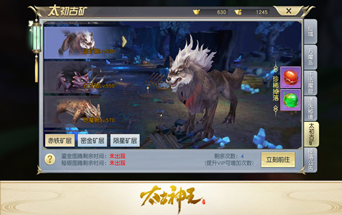作为跨服世界的仙域不只是资源更多产出更好,还有名为“太初古矿”的矿脉可以产出多种特殊神石,用以强化和淬炼宝石。太初古矿规模极大,拥有赤铁、密金、陨星三大矿层,各种等级的BOSS和小怪供玩家自由选择,再算上其他服务器的竞争对手,让你在挖掘仙域特产神石的同时也能尽享战斗乐趣。