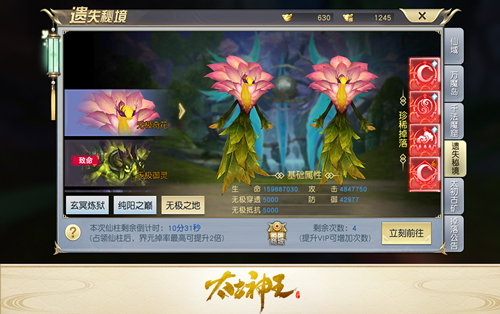 仙域之中仙魔并存,如果说万魔岛是魔修的老巢,那遗失秘境就是危险又美丽的仙境了。纯阳之巅、无极之地、玄冥炼狱这三大遗失秘境都能产出强大的界元,玩家佩戴界元后可以大幅提升实力,更有人皇、圣主、魔帝等多种界元套装可以收集。由于占领秘境仙柱后界元掉落概率倍增,所以往往会有玩家为了争夺仙柱大打出手,再加上浑水摸鱼的“第三者”,可以说是真正的“仙境大乱斗”。