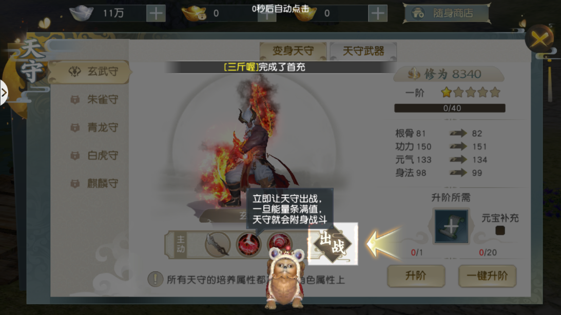50级开启天守,可设置跟随出战,将天守升阶会提升各属性