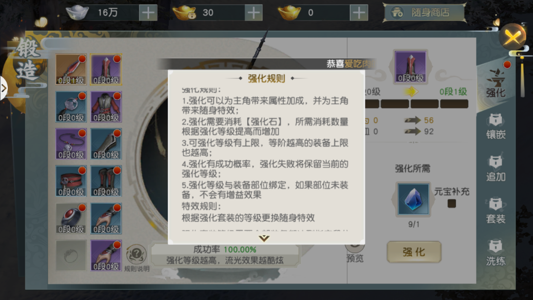 锻造,59级开启,锻造强化角色自身装备,有随身效果