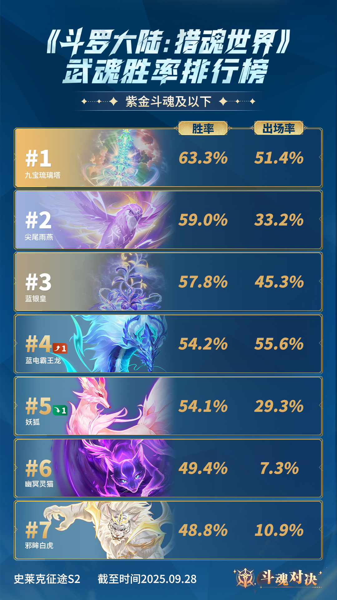 本期紫金斗魂及以上段位的胜率前三名为: