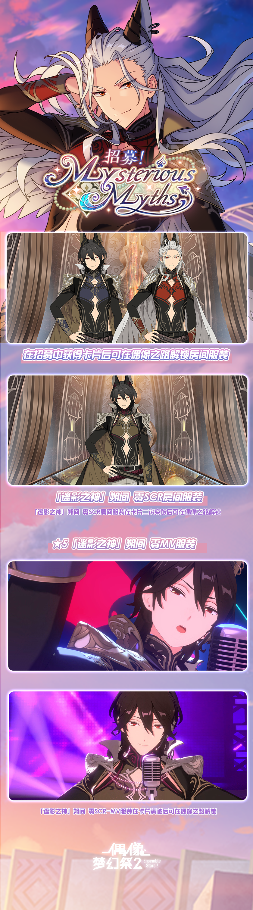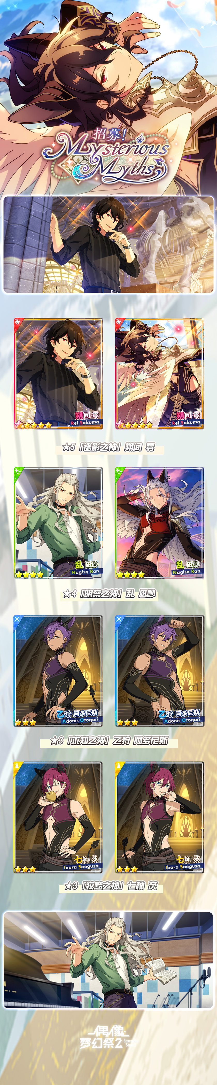 活动期间,「复刻招募!Mysterious Myths」限定卡池开启,以下卡片在限定卡池掉率提升。此次为限定卡片,该卡池可使用【上级招募券】进行招募;活动结束后暂无其他获取方式。