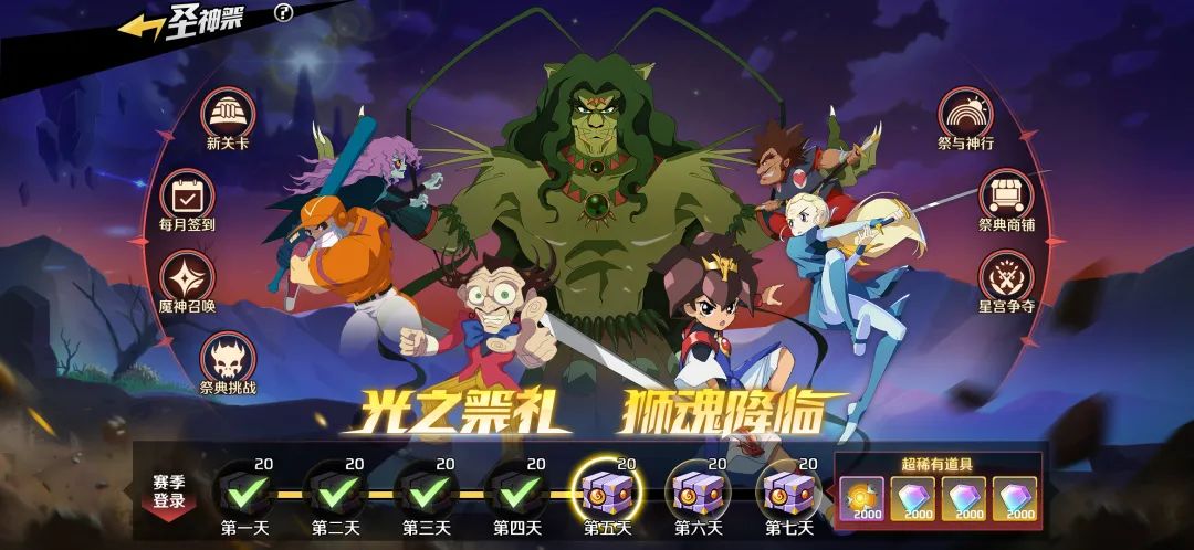 在圣神祭中完成独有的赛季模式的活动和功能玩法,获取特殊的赛季奖励