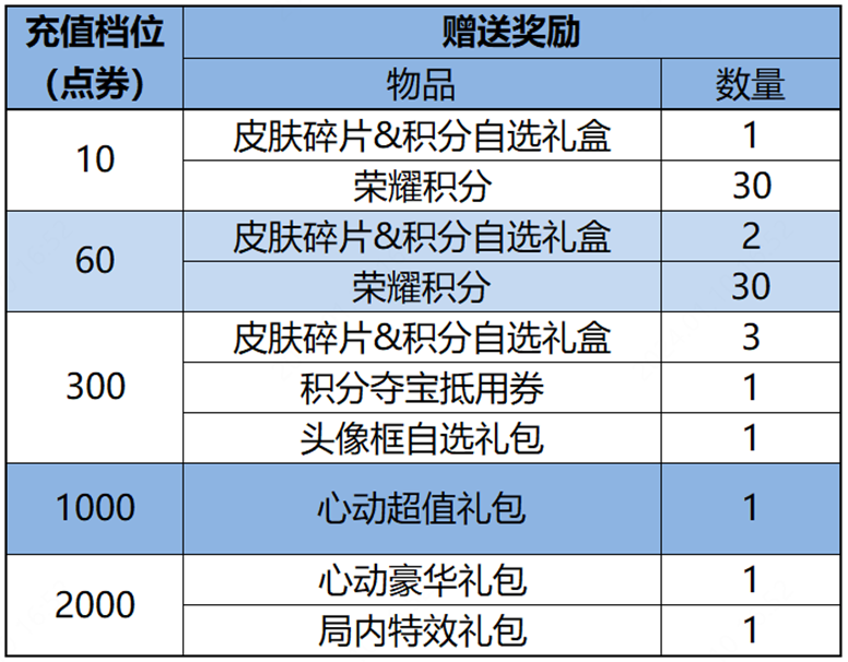 皮肤碎片&积分自选礼盒:打开礼包可任意选择以下奖励之一:荣耀积分*10或皮肤碎片*1