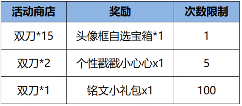 其他内容:对局签到送头像框参与活动收集双刀送头像框自选宝箱等好礼!