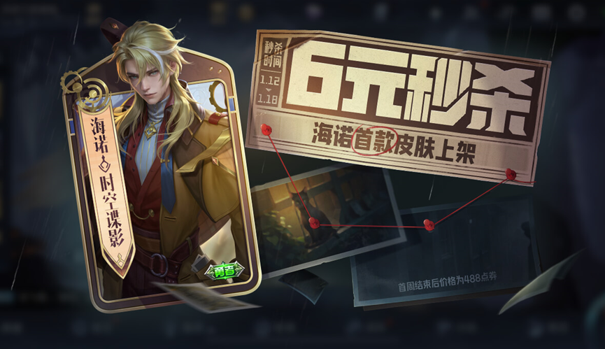 内容四:海诺-时空谍影 首款皮肤秒杀上架
