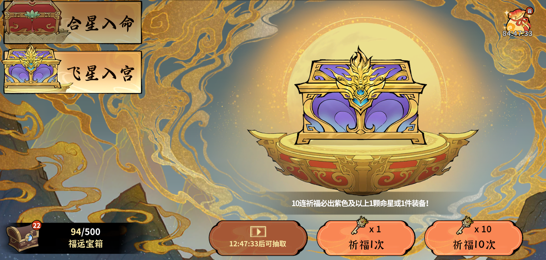 当道友们抽取到一定次数后,会解锁一个福运宝箱,内含丰富套装和命星奖励。