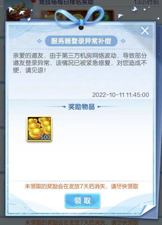 另外给大家发了500元宝作为小小的补偿,感谢大家的理解与支持!❤