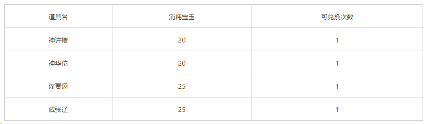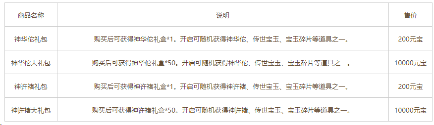 注:神华佗过期时间为2025-12-31 23:59:59、神许褚礼盒过期时间为2026-06-30 23:59:59。且在活动期间以外开启宝箱无法获得珍宝助力