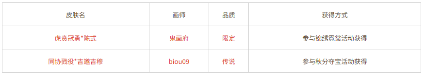 累计参与秋分夺宝160次(消耗秋分夺宝券*800),可领取奖励:同协戮役*吉邈吉穆,限完成1次。