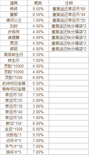 注:新品夺宝和返场夺宝均使用秋分夺宝券抽取,但各自进度单独计数,互不影响。