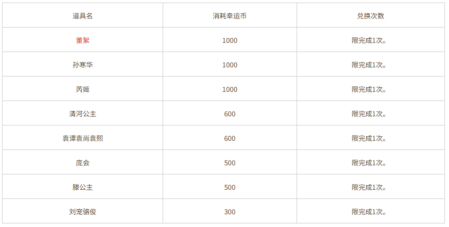 注:其他兑换内容请前往游戏内查看。