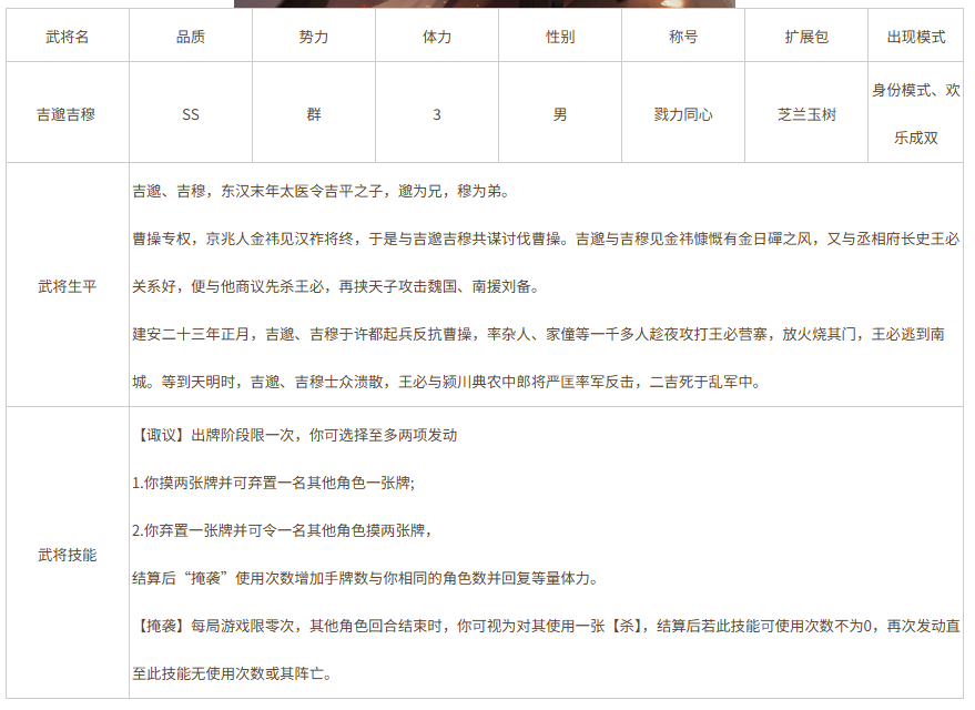 注:新品武将吉邈吉穆上线,可通过参与纳贤活动获得!