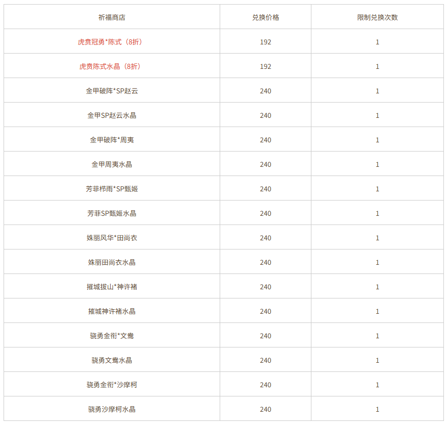 活动期间,抽取虎贲冠勇*陈式、虎贲陈式水晶时,每日前两次十连抽享有特惠折扣,仅消耗3888元宝!
