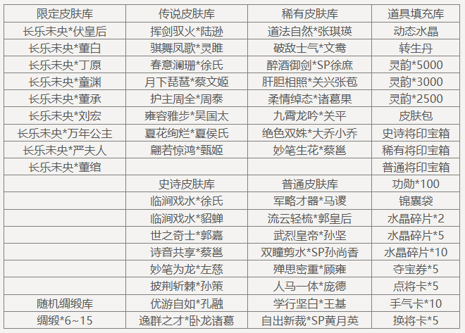 累计消费8888元宝,可领取奖励:纳贤令*1、皮肤包*2,武将招募令*1,限完成1次。