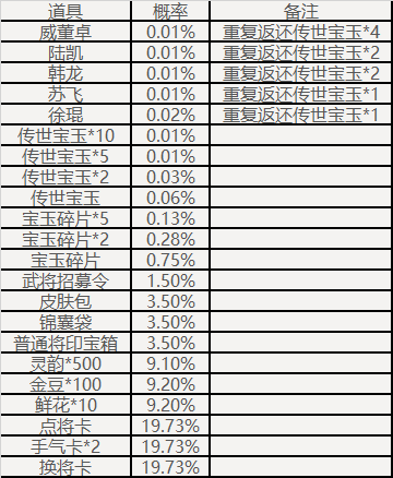 每累计开启威董卓礼盒*50,可获得奖励:传世宝玉*1,限完成20次。