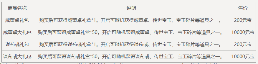 注:威董卓礼盒过期时间为2025-12-31 23:59:59,谋荀彧礼盒过期时间为2026-06-30 23:59:59,玩家可随时开启宝箱。