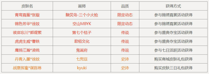 注:新品双形态限定皮肤:青鸾霓凰*张嫙,限定皮肤:锦色芳华*徐妏全新上线,限时8折特惠获得!