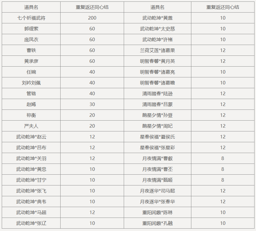 获得重复热门武将时,返还中郎将印*1。