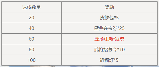 每累计开启神庞统礼盒*50,可获得奖励:传世宝玉*1,限完成20次。