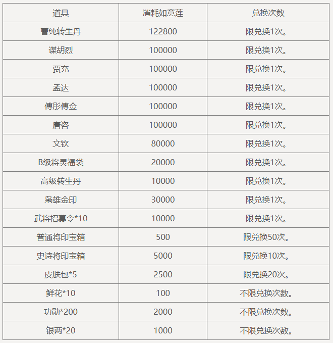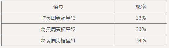 消耗将灵周夷福星*3,可兑换道具:周夷转生丹*1,限兑换1次。