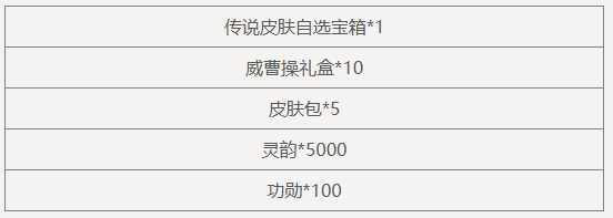 累计消费8888元宝,可领取奖励: 纳贤令*1、威曹操礼盒*5,限完成1次。