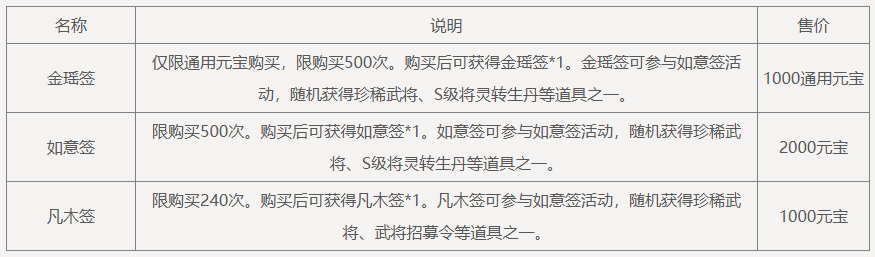 周年庆典限定,累计消费7777元宝,可领取奖励:如意签*1,限完成10次。