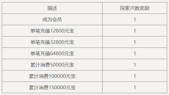 每个玩家最多可获得7次探索次数,不论玩家探索消耗通用或者绑定元宝,探索奖励仅会返还绑定元宝。