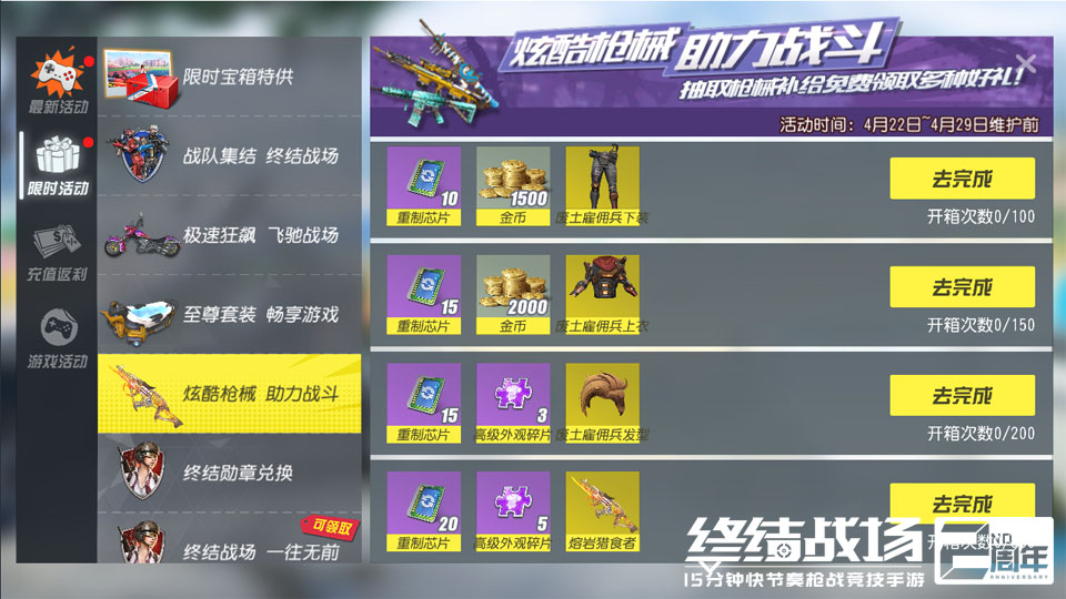 抽取枪械补给达到一定次数后,玩家也可以在“炫酷枪械 助力战斗”活动中兑换获得AKM外观“AKM-熔岩狩猎者”、男性角色外观“废土雇佣兵”以及其他重制芯片、高级外观碎片等游戏道具奖励。