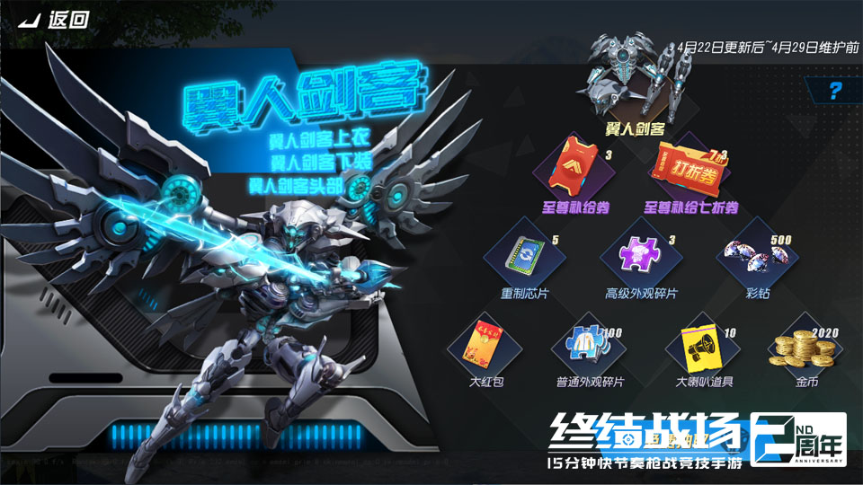 在4月22日至4月29日期间,玩家抽取枪械补给还可以获得“翼人剑客预装礼包”以其他精品道具奖励。翼人剑客设计结合了神话、剑客与未来元素,成功展现了机甲幻想之美,而至尊补给券、至尊补给七折券也将为玩家带来绝对实在的优惠体验,大量重制芯片、彩钻、金币等实用道具,也将让玩家的游戏之旅更加轻松。