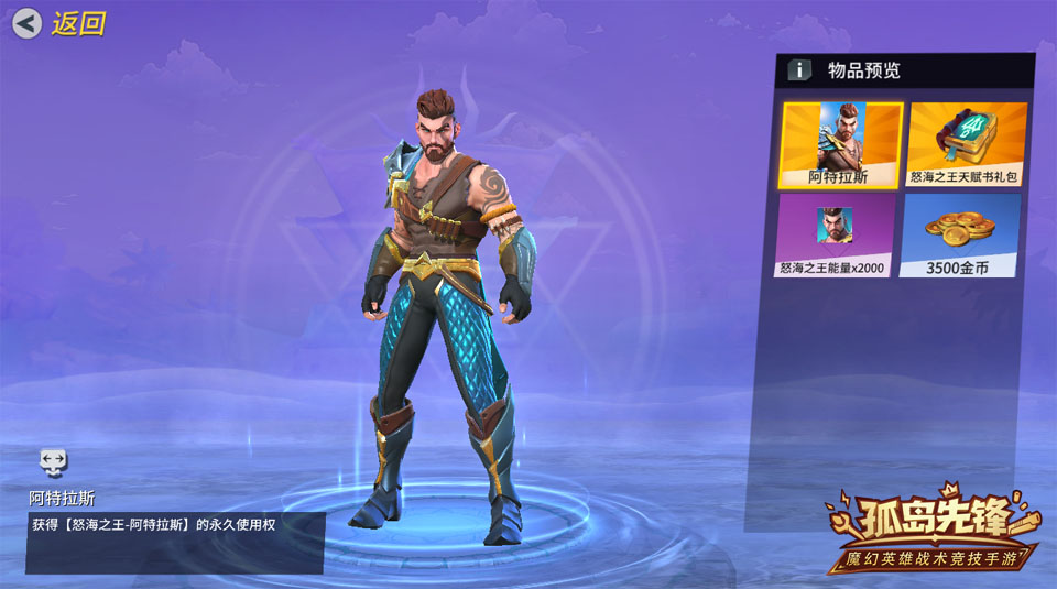 在本周更新内容中,怒海之王专属各项大礼包联袂登场,协助玩家召唤真正海皇之威。其中“怒海之王成长礼包”开启后,可以获得怒海之王阿特拉斯的永久使用权、大量英雄能量、怒海之王天赋书礼包以及海量金币。如果玩家已经拥有怒海之王,那么系统还将自动扣除差价。