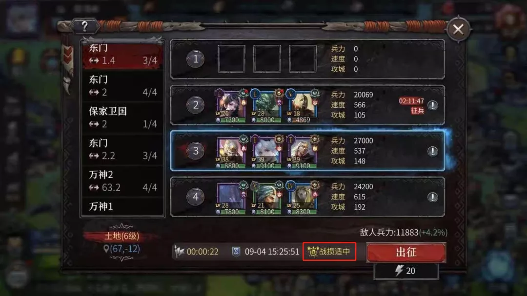 四五级地能否打下看出征提示是否为战损适中,六七八级地一定要避开,因为拆迁队一定打不过。