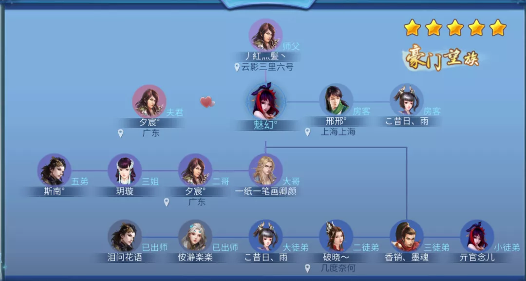 我们的主角是扶摇万里的夕宸°和魅幻°。最初魅幻在云梦天泽,夕宸在七曜流光,后来经历合区又合帮,两人才认识。