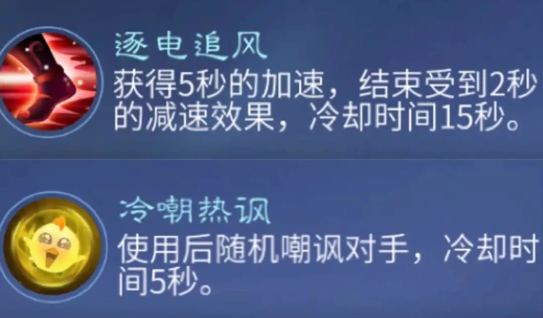 5. 小伙伴们可以使用临时技能“逐电追风”来获得加速,使用“冷嘲热讽”以讥讽对手。