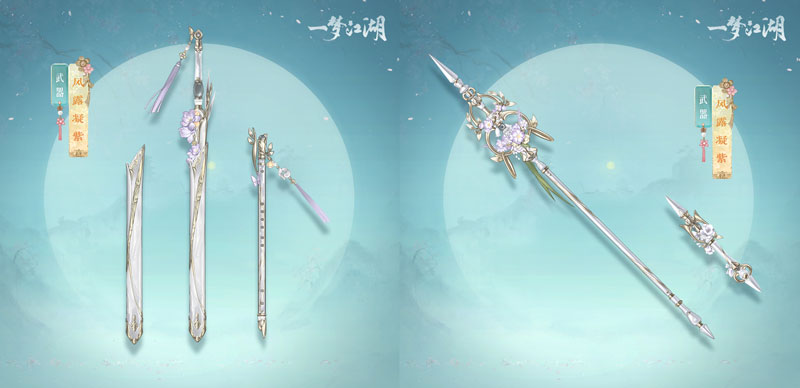 流云涵雪楼的品种珍贵的紫牡丹今日开化,昭华委托云锦楼大师傅以“紫牡丹”为题眼打造唯美的全新武器·风露凝紫。