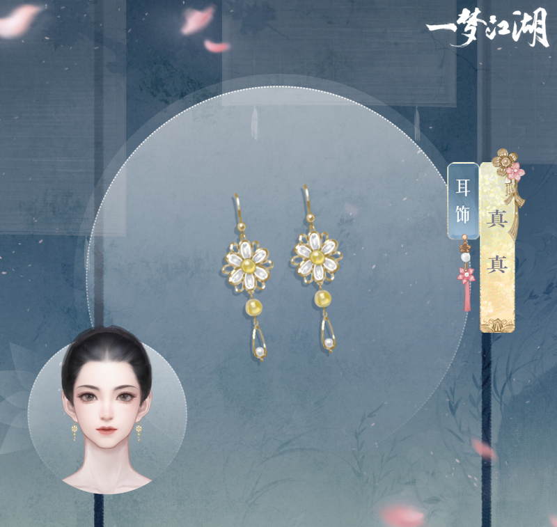 耳饰·真真以银质花朵制成,中心镶嵌着一颗澄明黄玉,流光闪烁,仿佛明辉照入新雪,春光落入耳畔。精心编制的镂空花瓣别添几分轻盈之感,行走之间,水滴坠子中的珍珠欲滴未滴,令人心神摇曳。