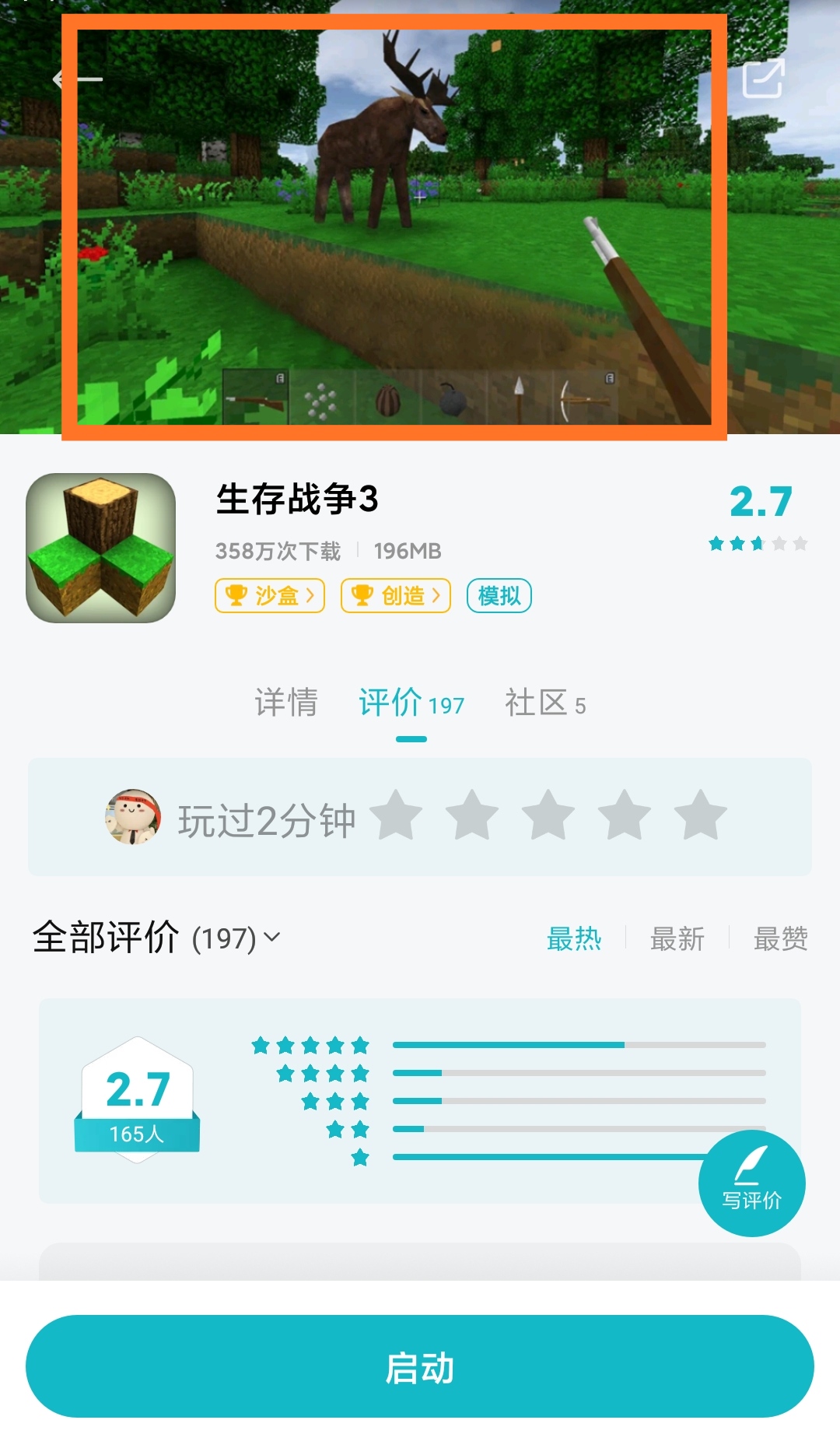 抄了我的世界不说,尤其是游戏体验,不能换皮肤,只能用艾利克斯,创建世界直接卡到差点死机。还生存战争三呢,生存战争二代我都玩到2.4版本了,哪来的三代呀?图标也一样,抄袭生存战争一代。还有这宣传图,我猜也是盗用的吧。某些个水编呀,直接就打个五星好评往死里吹,也不知道他们真玩了还是假玩了。还有就是现在的游戏中心我也是真服了,动不动就乱下架游戏,你们没看吗?冈易的我的世界也被下架了,现在搜不到了。散会