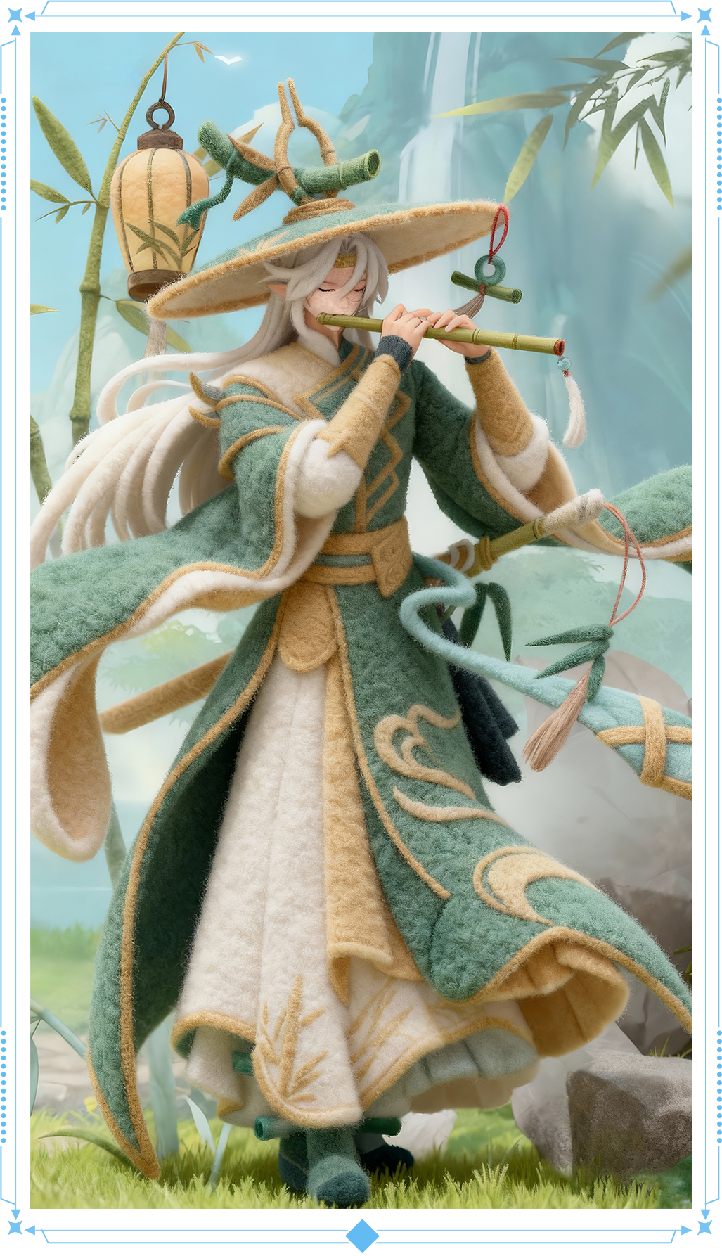 竹风裹雪,笛音清冽,他于寒林深处,以雅韵点化冬意,守一方清寂悠然。