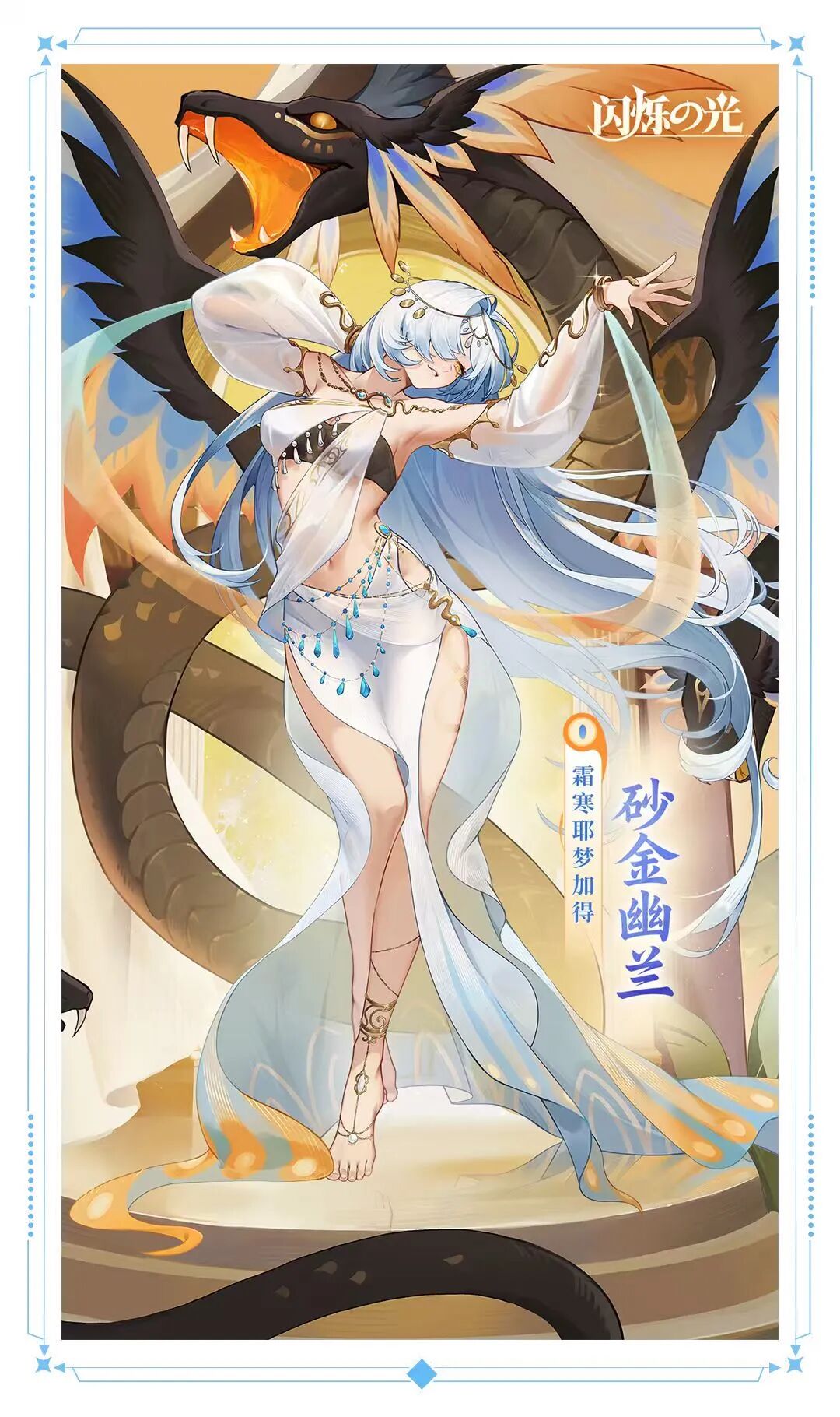 活动期间,使用【沙海星冕】参与砂金幽兰祈愿活动,即有机会获得霜寒耶梦加得全新皮肤【砂金幽兰】、霜寒耶梦加得本体等稀有道具,活动中还可获取其他SP自然系英雄及皮肤哦!
