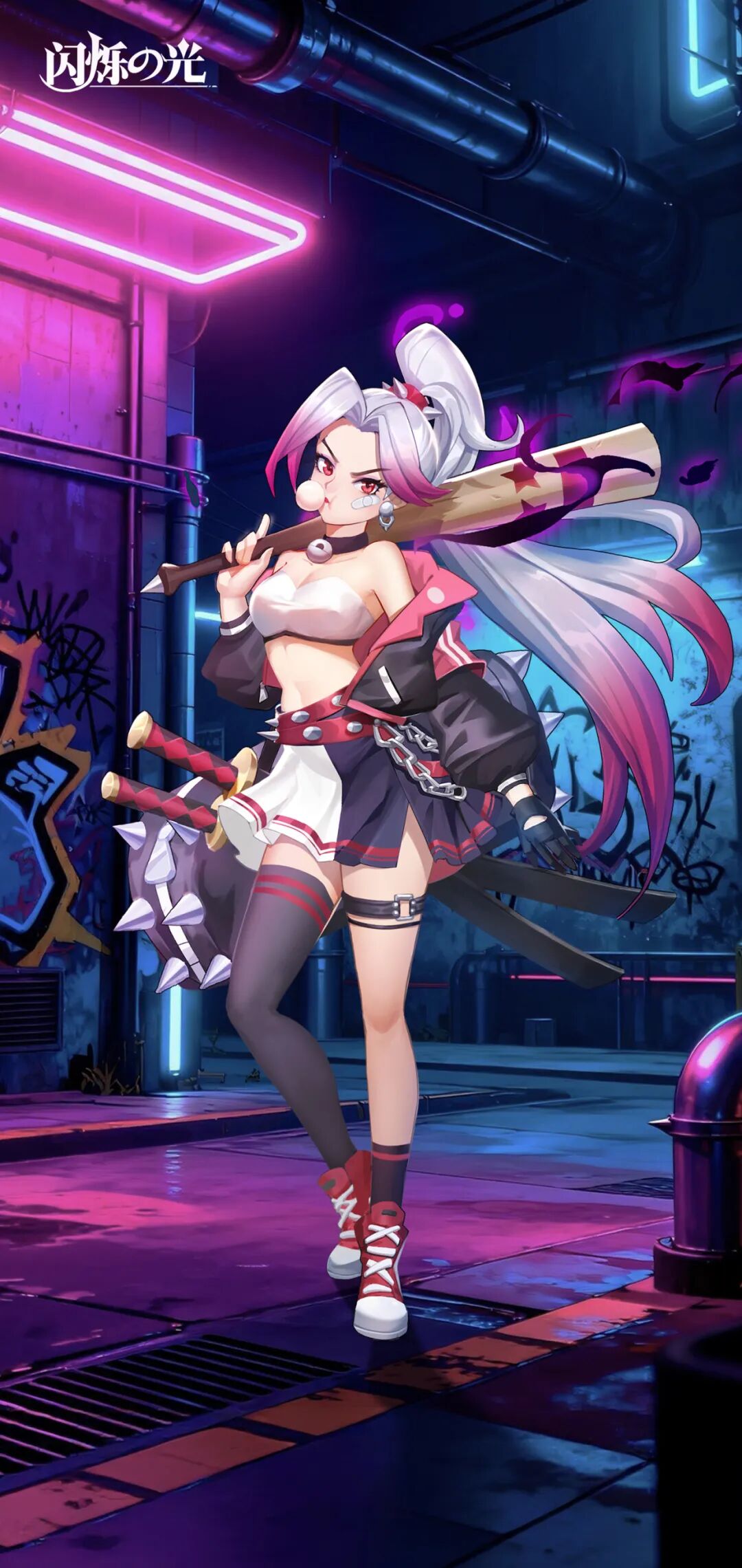 霓虹紫粉,涂鸦小巷,朋克裙装缠链带刺,她吐着泡泡糖扛着棒球棒,告诉众人:这条街,她说了算!