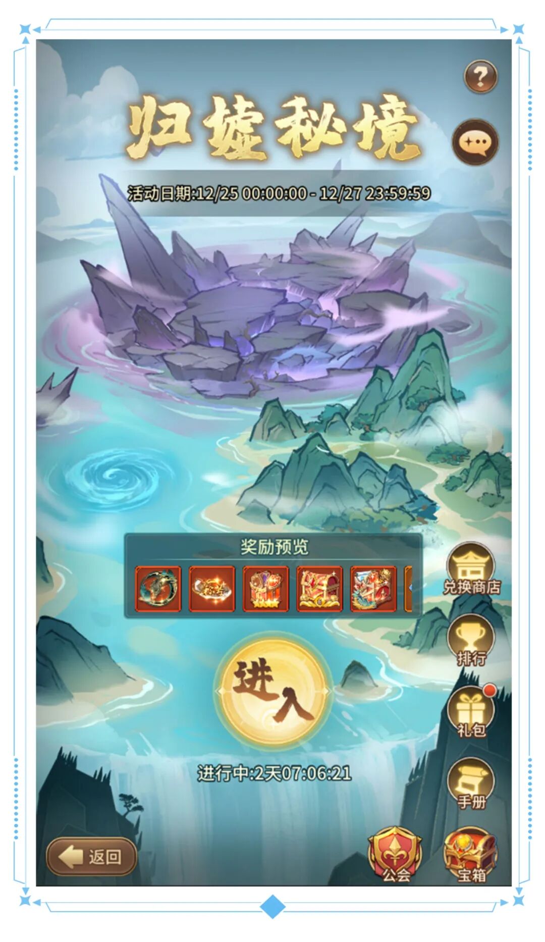 (1) 归墟秘境有三个区域,分别为入口·流波海、深处·扶桑林、禁区·归墟域;在每个区域消耗体力探索,会遭遇不同的妖兽和事件,越靠近秘境禁区,战斗难度越高,奖励越丰厚
