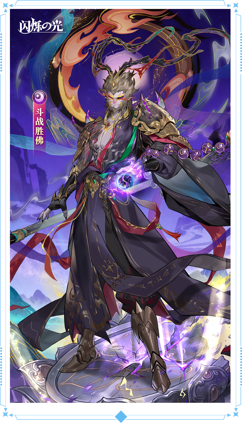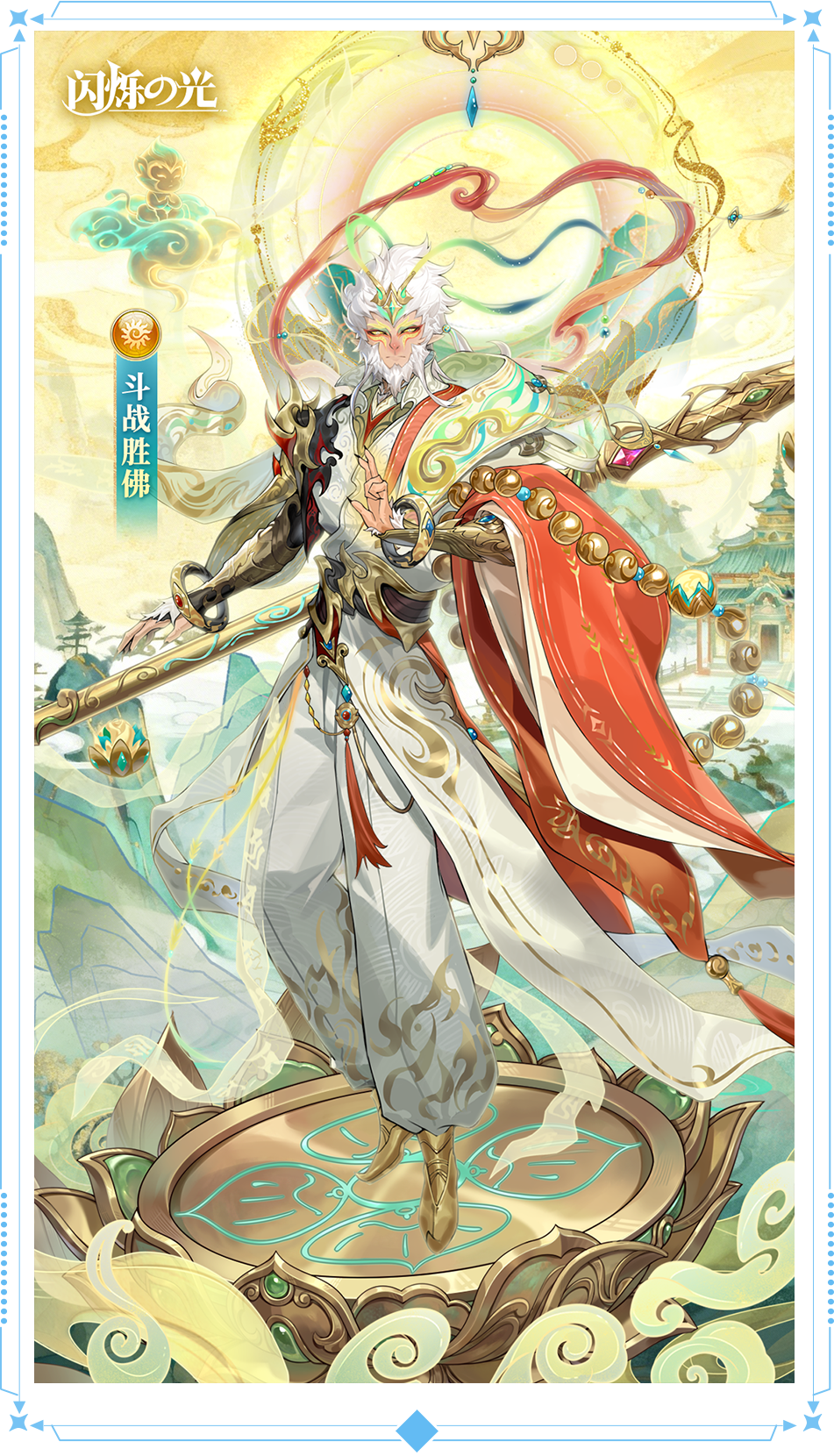 新春会上那神秘身影终于调息完毕正式亮相!只见眼前之人金瞳含威,身披红白鎏金法袍,佛光金轮悬于身后,祥云环绕尽显佛性,他就是首位混沌UR——【斗战胜佛[无量]】!