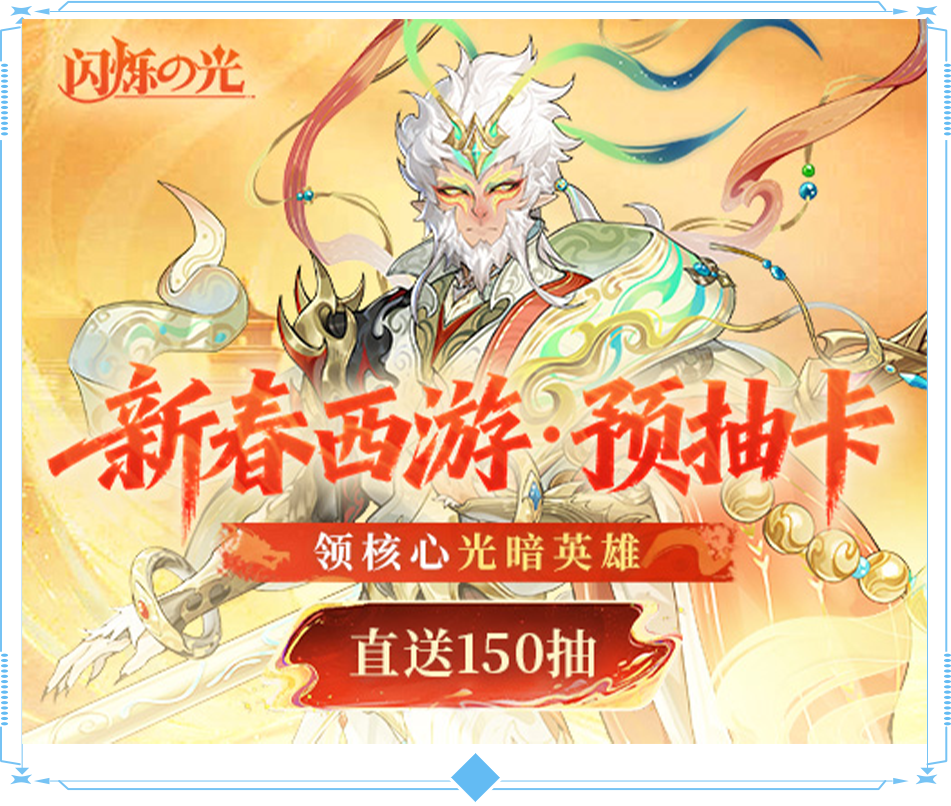 闪烁之光新春西游 [闹春] 专服预约开启!参与活动免费领150抽!除预约奖励外,还有超多精彩福利在下面等你解锁哦~
