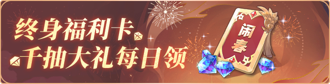 新春专服专属终身卡免费送!登录即可领取,激活后持续时间永久!而且来新春专服上线送你5000抽,助力你心仪的阵容快速搭建!