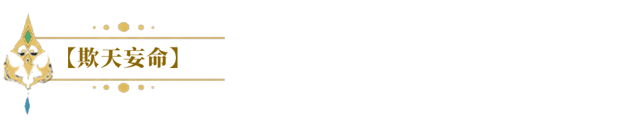 攻击、生命、抗暴提升一定比例;回合开始时,为自己附加【魔相护盾】和一定层数【暗刻I】,冷却一定回合;受到致命攻击时,可以格挡一次致命伤害并保留最多一定比例生命,触发后冷却一定回合;若此时处于领域【无间狱】且持有【暗刻II】,则可消耗【暗刻II】进入【欺天妄命】状态,且格挡效果的冷却缩短。