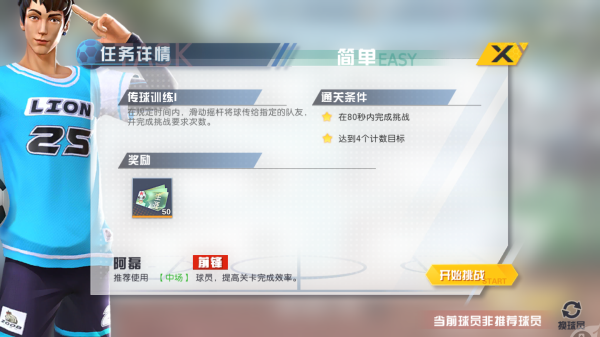 ①以上是传球训练I,难度等级属于简单,通关的要求是要在80秒内完成传球挑战,传球的数目需要达到4个有效计数,通关挑战成功即可获得生涯票券*50,生涯卡券可用于购买球员训练书。