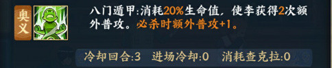 奥义:这个技能的亮点就是不用续航查克拉,但缺点是要损失自身百分之二十的血量,不过换取两次普攻,收益还是蛮高的,特别是在第一回合中,能对敌人造成不少的伤害。必杀时多加一次额外普攻的机会,算一个较小的爆发。