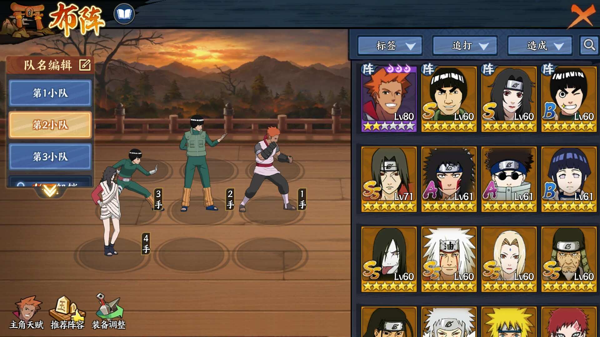 阵容总结:这套阵容还是非常厉害的,可以用来打PVP模式,PVE的话就不推荐了,毕竟这套阵容没有硬控的忍者,想用这套阵容上分的话,还是需要谨慎一点,毕竟李[少年篇]的身板很脆,而且还很容易被针对。